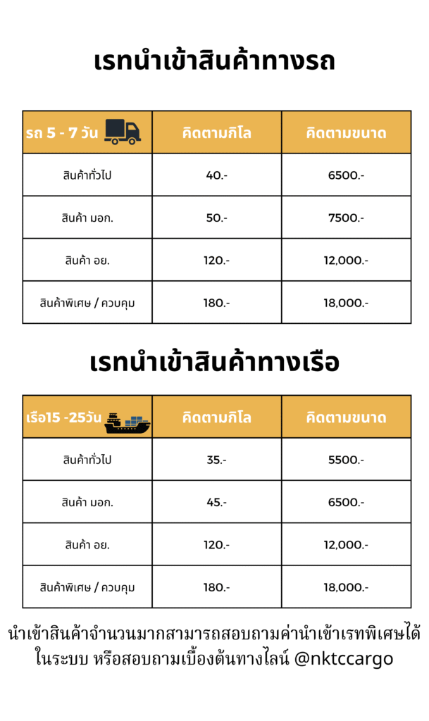 ขนส่งสินค้าจีน ไทย ทางรถ ระยะเวลาการจัดส่ง 5-10 วัน ไม่รวมวันหยุด