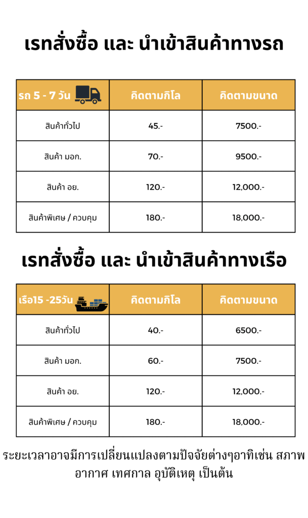 ขนส่งสินค้าจากจีน มา ไทย ทางเรือ ระยะเวลาการจัดส่ง 15-30 วัน ไม่รวมวันหยุด